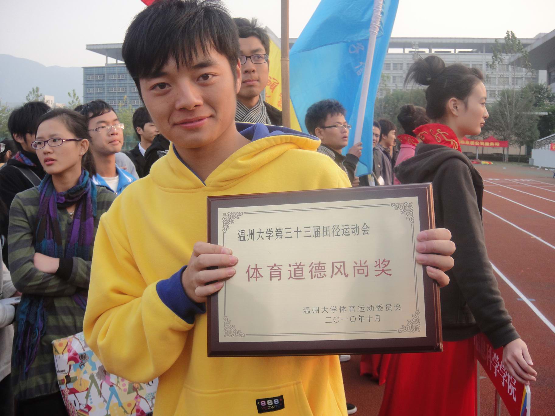 在10月29日的团体跳绳比赛中,彩票平台参赛选手以60跳的足够优势夺得冠军,并将于11月代表温州大学参加市里的跳绳比赛!同时,彩票平台被授予“体育道德风尚奖”。