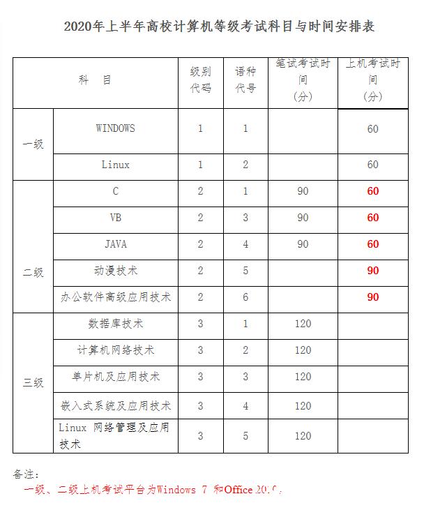 (二)上机考试一级、二级:2020年6月7日至9日。(具体时间安排另行通知)。