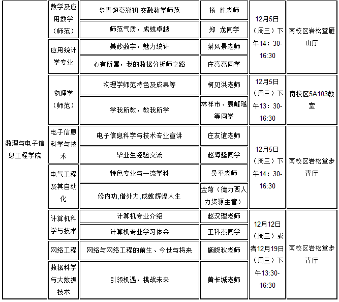 为了让2018级学生更深入地了解本专业,同时为各个专业提供一个向全校师生展示和交流的平台,学校特开展温州大学2018级“我的大学 我的专业”专业宣讲系列活动。本学期共有9个学院30个专业向全校师生开放宣讲,欢迎广大师生踊跃参加!具体安排如下: