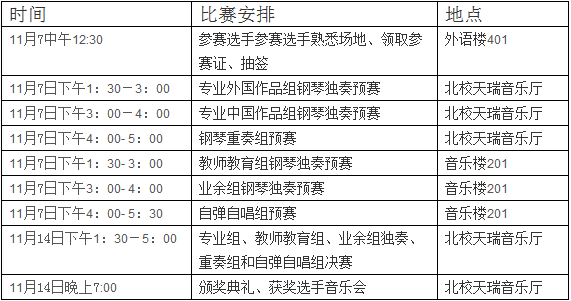 本次比赛分预赛和决赛,比赛形式是钢琴独奏,钢琴重奏(四手联弹、双钢琴等),自弹自唱,不设规定曲目,自选作品一首,限时3-12分钟左右,预赛和决赛可弹奏同一作品(专业组决赛时要求加弹一首指定曲目,谱子和音响资料可在彩票平台