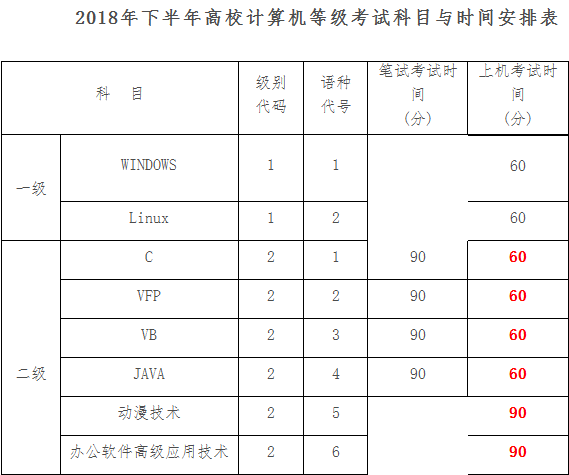 (二)上机考试一级、二级:2018年11月17日至18日。(具体时间安排另行通知)。