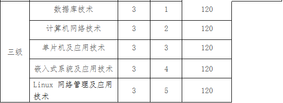 (六)三级:实行理论笔试,时间为120分钟。共有数据库技术、计算机网络技术、单片机及应用技术、嵌入式系统及应用技术、Linux网络管理及应用技术五个考种。
