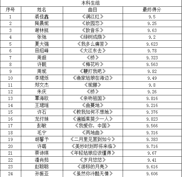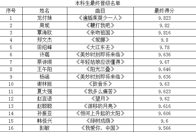 2018年温州大学校园十佳歌手(民美组)初赛已结束,现将比赛结果和晋级名单公示如下: